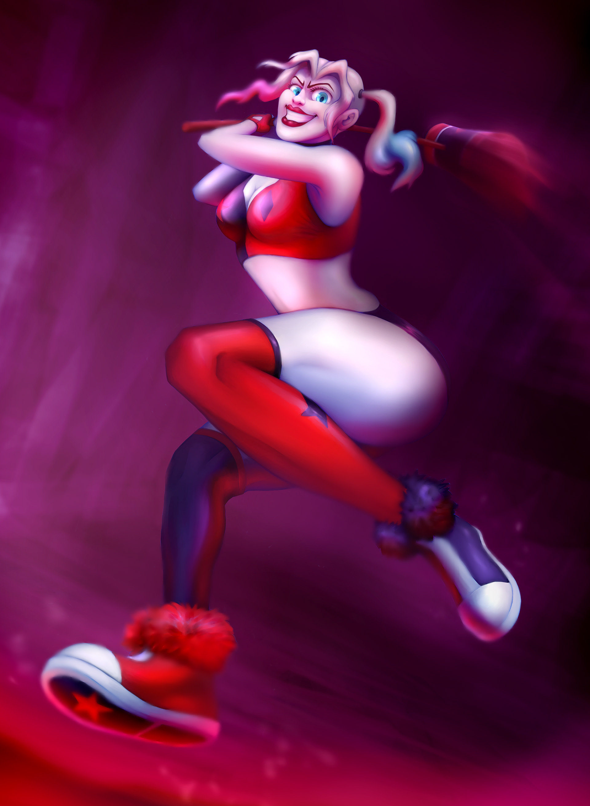 A personal illustration of DC's Harley Quinn. I especially love this character's design from the 2019 Max series and wanted to practice rendering with this illustration.