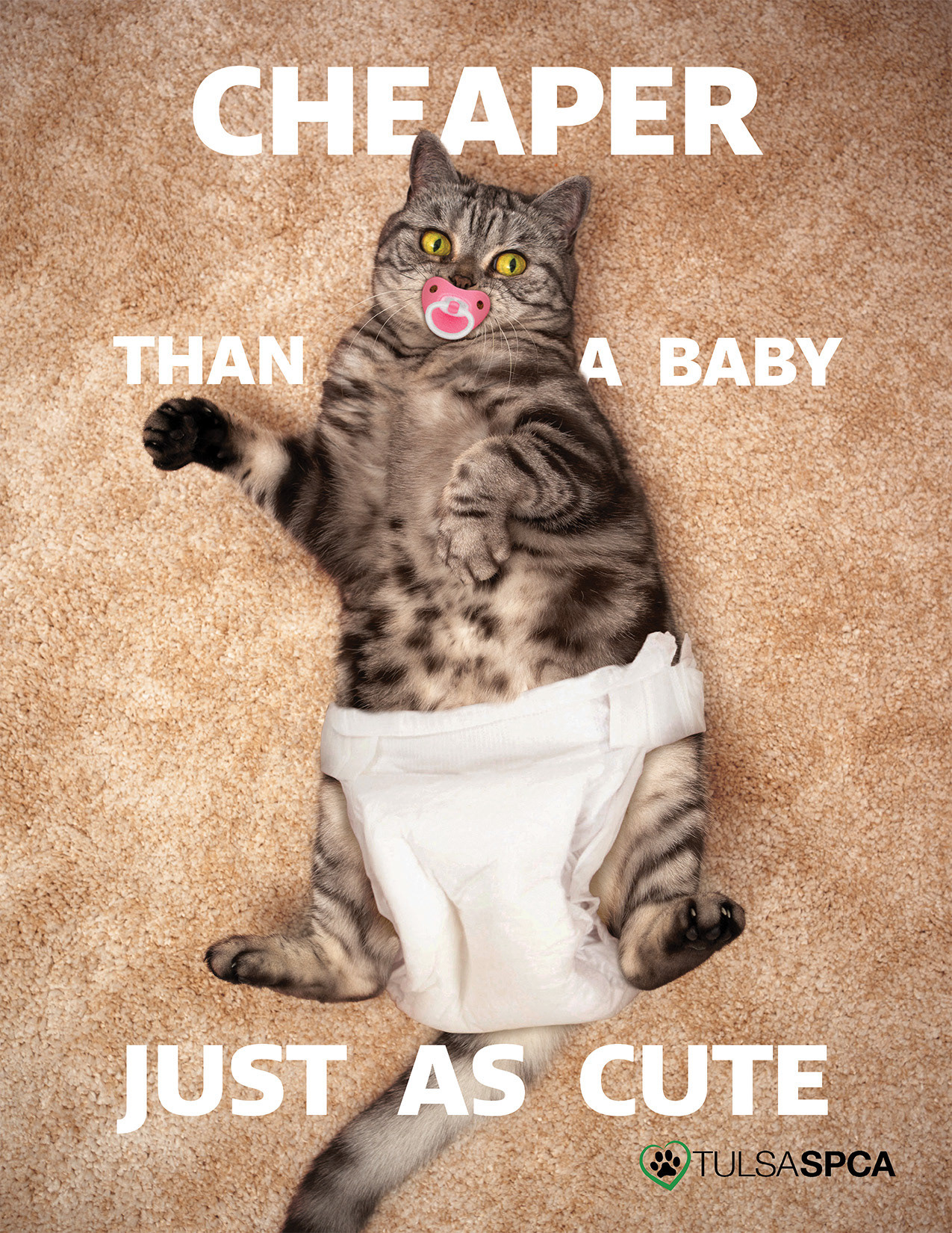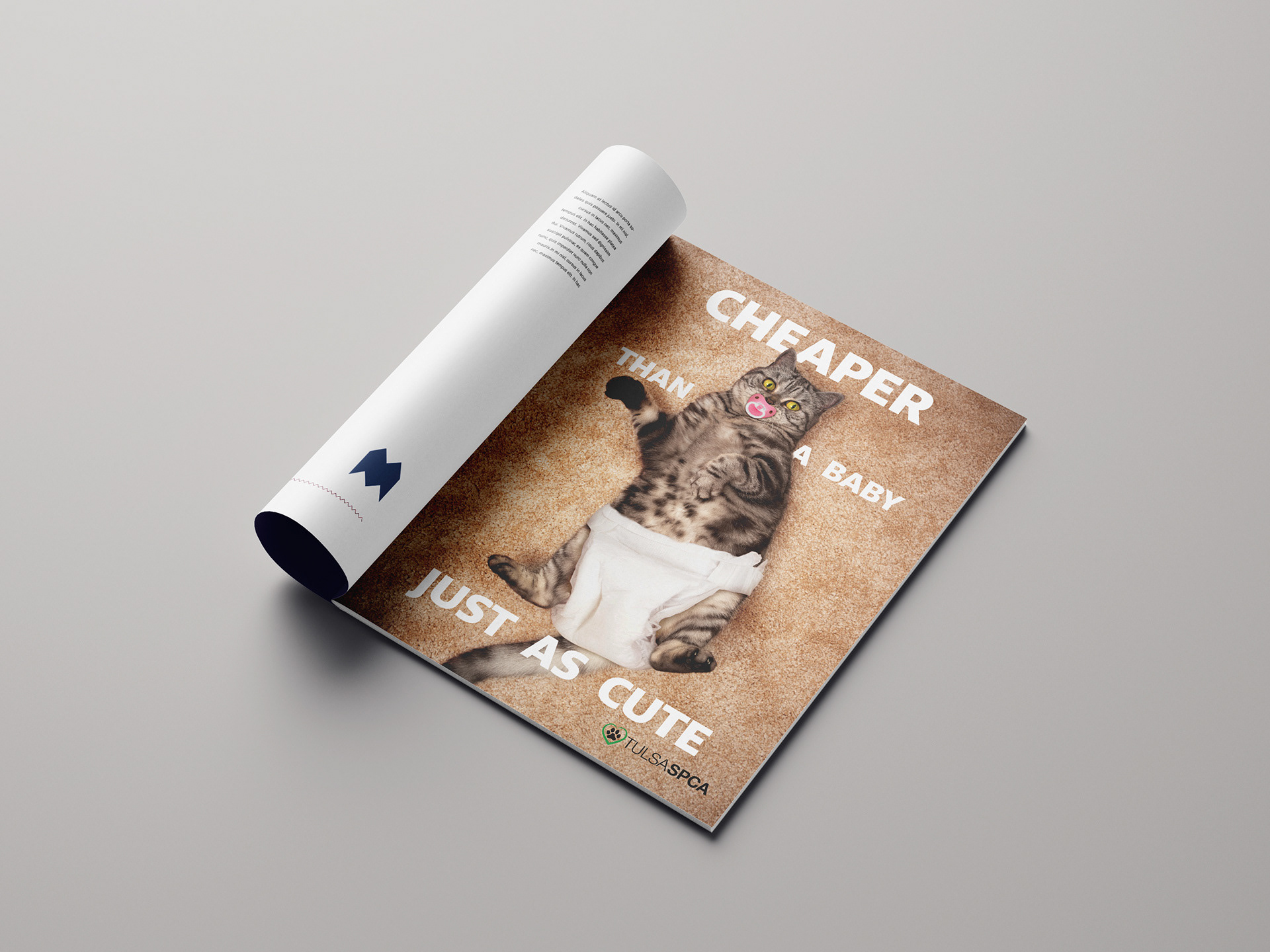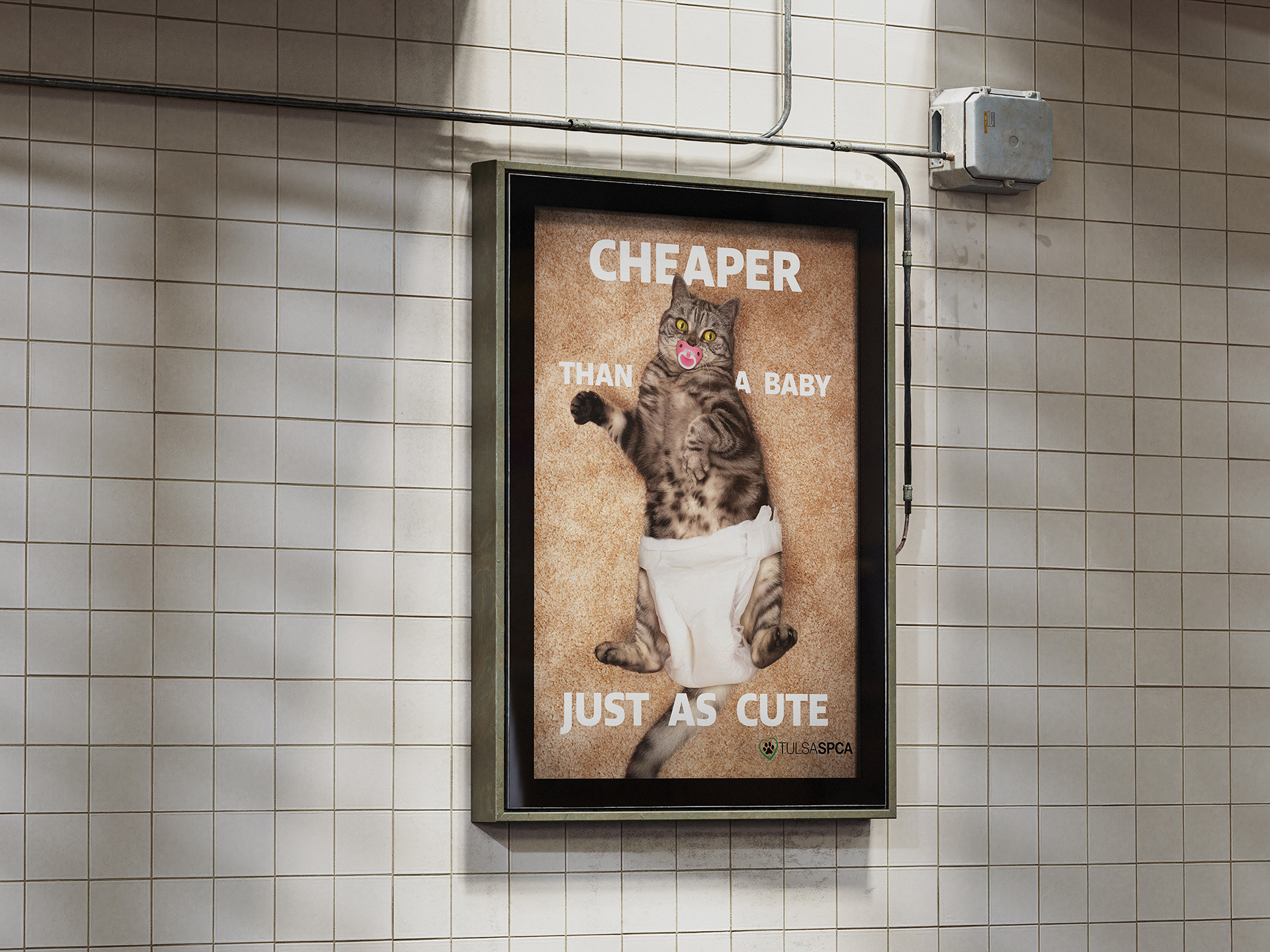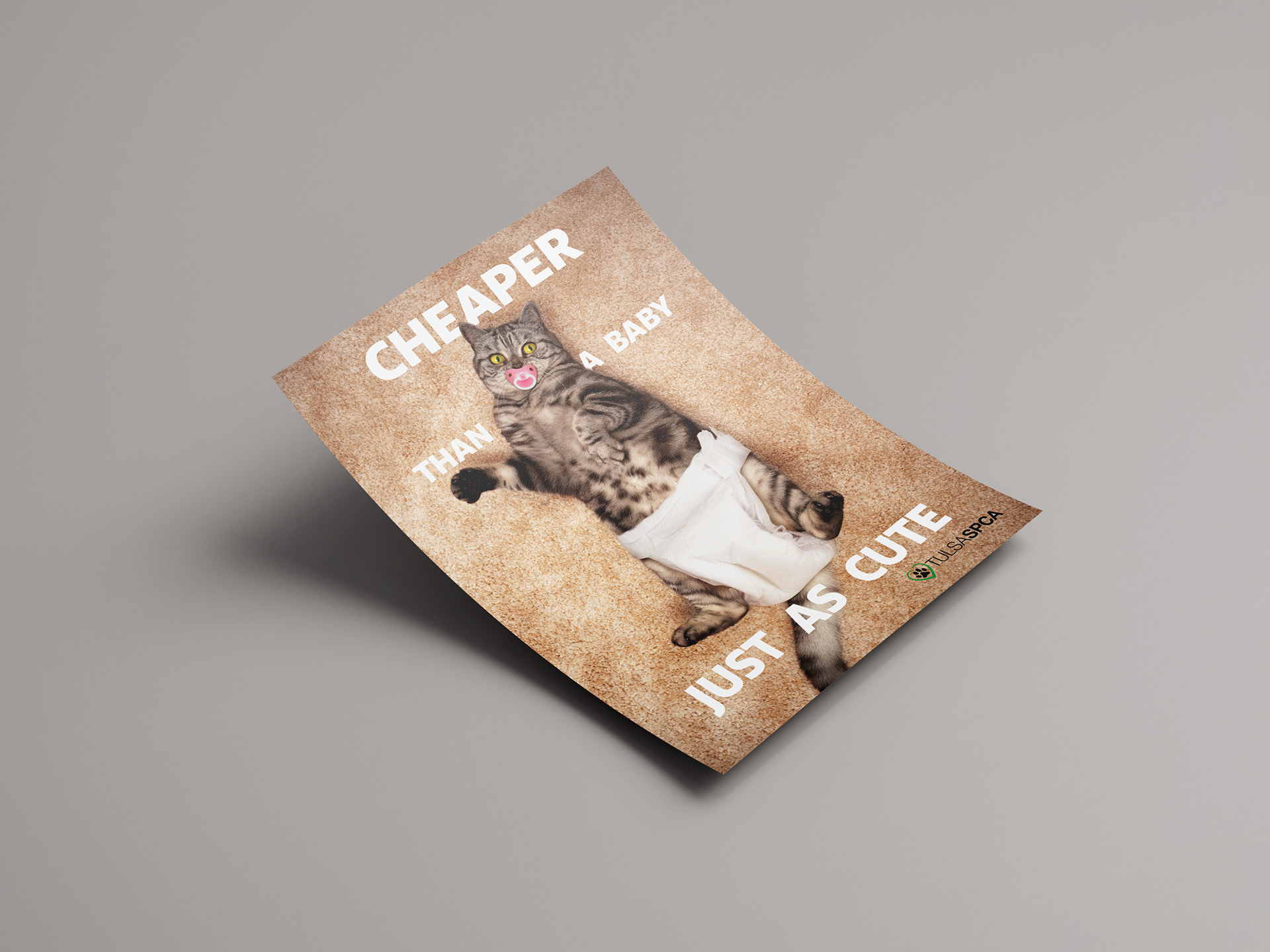 An unofficial print advertisement for the Tulsa, Oklahoma SPCA. As a cat owner, this was a blast to work on. Thankfully, no cats were actually forced to wear a diaper in the making of this piece.